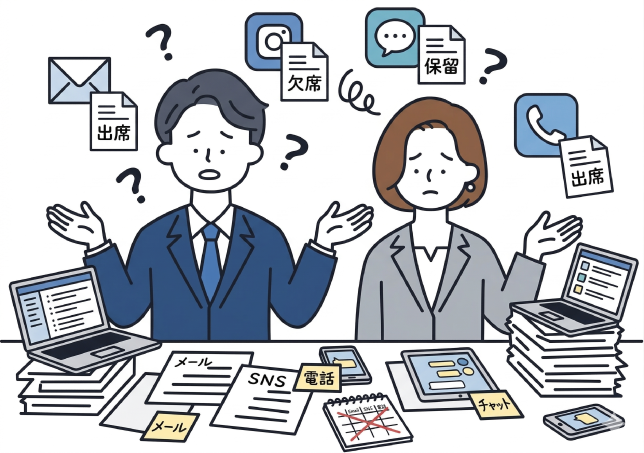 例会やアクティビティの出欠確認、資料の配布、食事会・懇親会の返事など